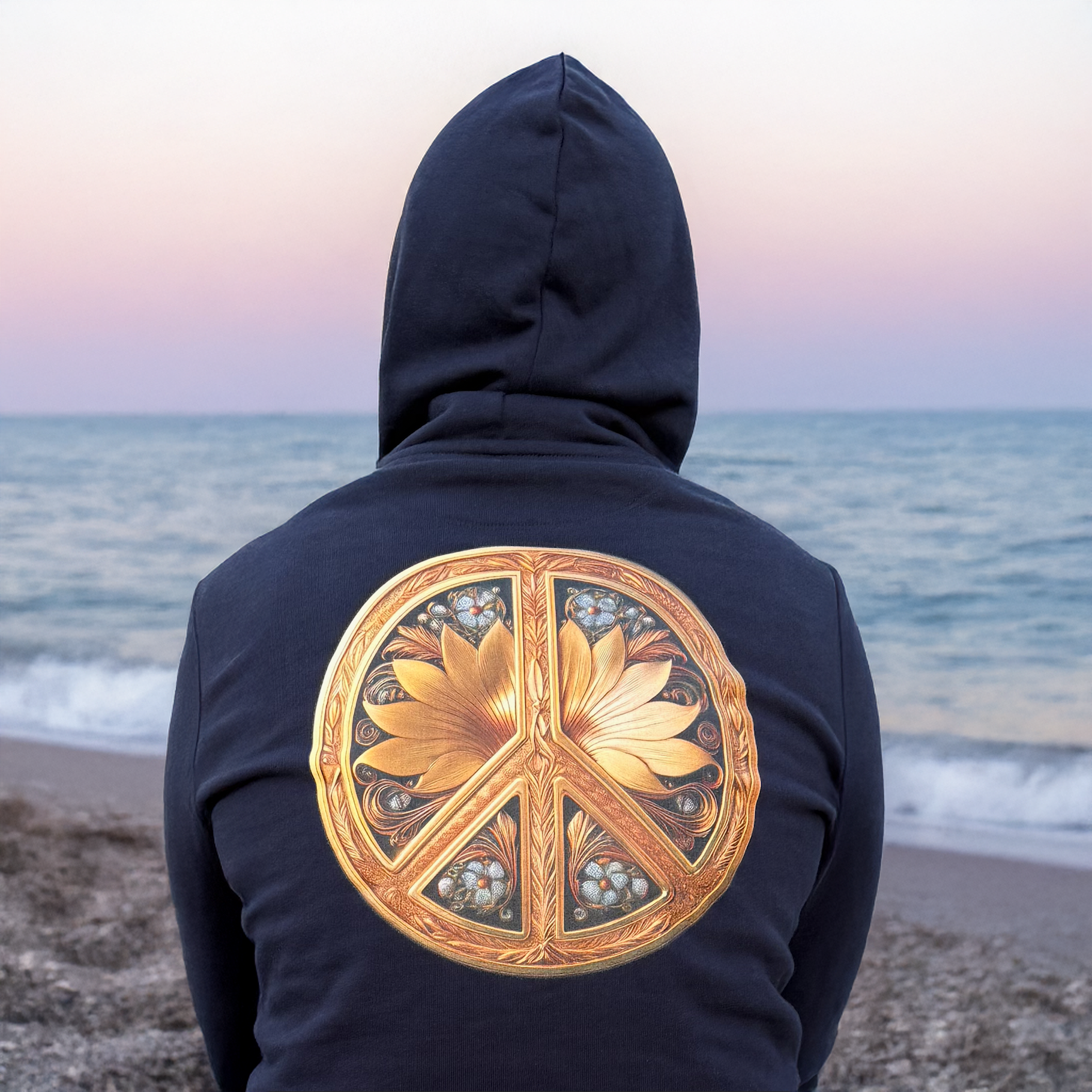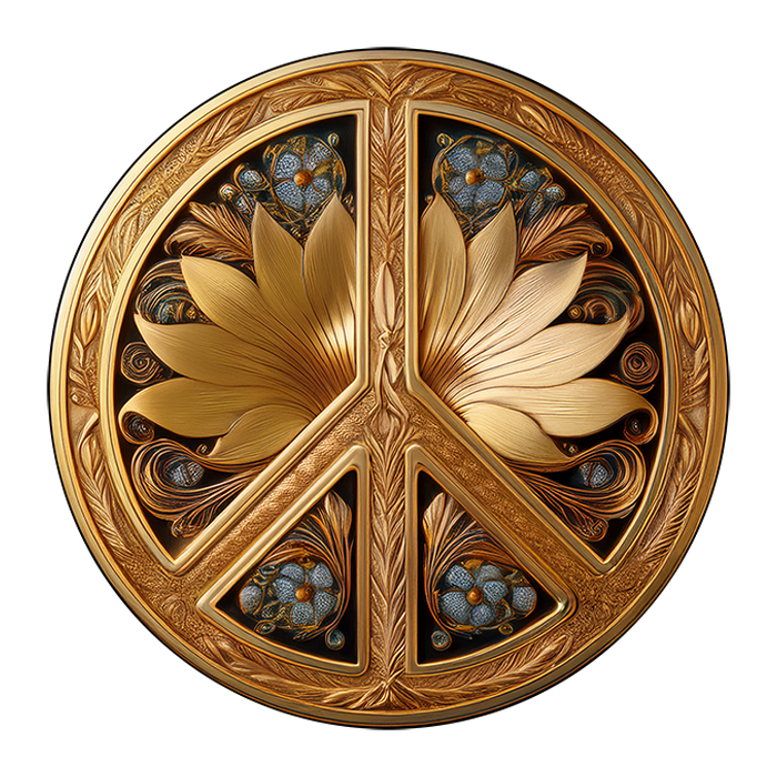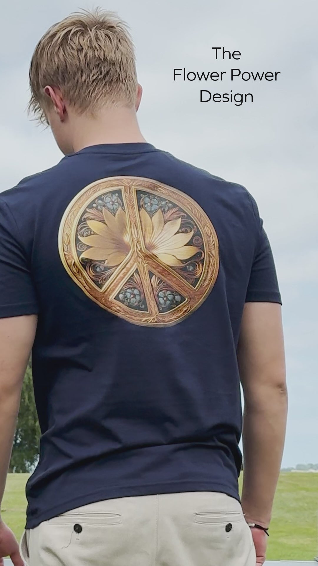 Inspireret af fredsbevægelsen i 60'erne, bringer dette design "Make Love Not War" og "Love of Nature" sammen på en yndefuld måde i ét design.