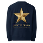 Denne unisex Stjerne - Økologisk Bomulds Sweatshirt i Navy Blue har VISUDECO® logoet broderet foran til venstre på brystet og en gylden stjerne trykt på ryggen.