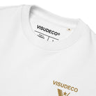Denne hvide sweatshirt af økologisk bomuld har VISUDECO® logoet broderet på venstre bryst foran og en illustration af en sovende persons ansigt på ryggen.